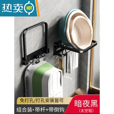 敬平脸盆收纳架卫生间壁挂免打孔盆架浴室洗手间放盆子器厕所置物架 [黑色组合装]带杆款+升级浴盆款浴室置物架
