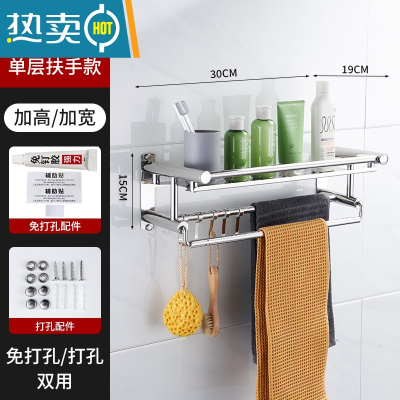 敬平特厚304不锈钢卫生间置物架免打孔浴室毛巾架收纳架厕所墙上壁挂 [特厚304]单层40cm—打孔安装浴室置物架