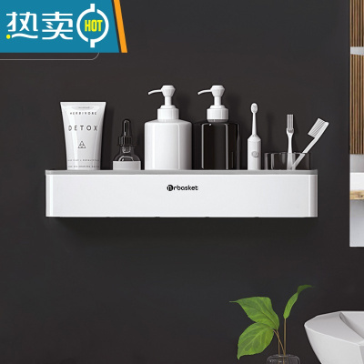 敬平卫生间置物架壁挂免打孔厕所毛巾架浴室挂架洗澡洗手间墙上收纳架 简约灰置物槽[加宽背胶 牢固加倍]浴室置物架