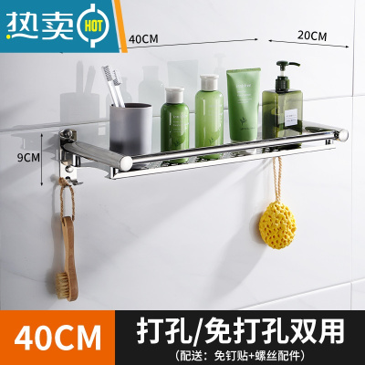 敬平304不锈钢卫生间置物架免打孔浴室毛巾架2层收纳架洗手间厕所壁挂 A托盘40CM(螺丝/胶水)浴室置物架