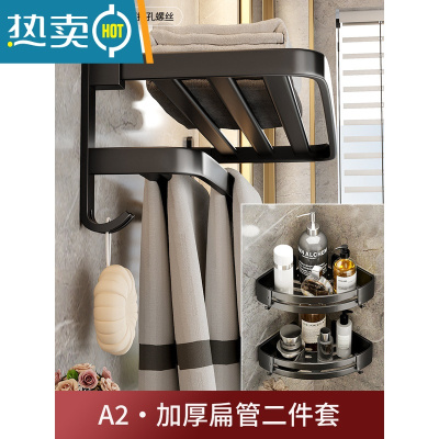 敬平毛巾架免打孔卫生间太空铝浴室双杆置物架免钉折叠浴巾收纳架简约 [A2]加厚款2件套浴室置物架
