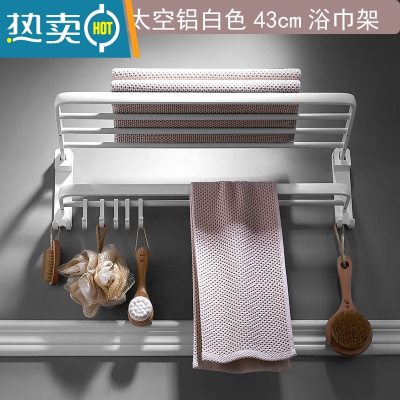 敬平白色浴巾架毛巾架免打孔太空铝浴室卫生间置物架卫浴挂架折叠架子 简约*可折叠-白色*43cm 打孔/免钉双安浴室置物架