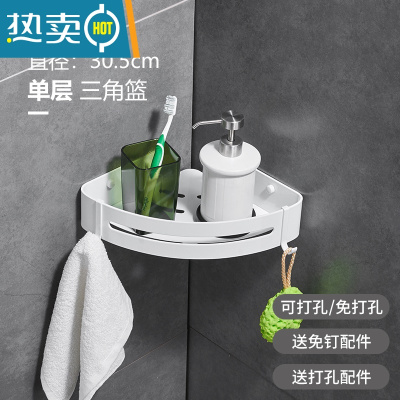 敬平浴室三角架免打孔置物架304钢转角架卫生间双层壁挂收纳架调料架 单层三角架免打孔 配粘贴免钉螺丝浴室置物架