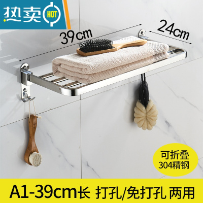 敬平卫生间晾毛巾架浴室浴巾架免打孔厕所304不锈钢置物架壁挂衣服架 毛巾架A1-39cm长(打孔安装)浴室置物架