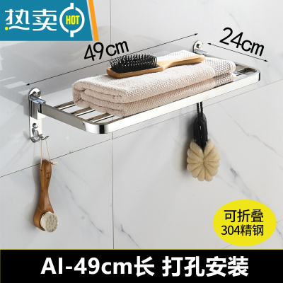 敬平卫生间晾毛巾架浴室浴巾架免打孔厕所304不锈钢置物架壁挂衣服架 毛巾架A1-49cm长(打孔安装)浴室置物架