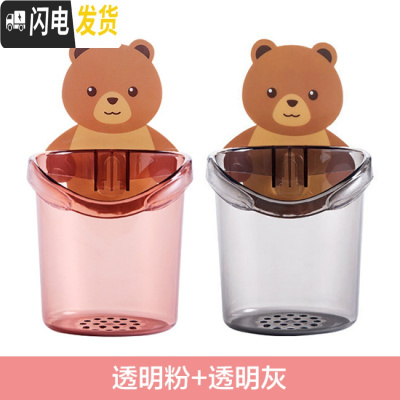 三维工匠卡通免打孔壁挂收纳筒牙膏收纳盒家用浴室牙刷架牙具收纳架 2个装(1粉+1灰)