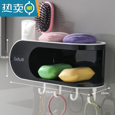 敬平肥皂盒壁挂式创意沥水架家用双格卫生间双层浴室免打孔香皂架 经典黑[双层置物架 挂钩款]