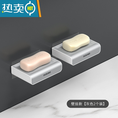 敬平肥皂盒壁挂式创意沥水架家用台面卫生间双层浴室免打孔香皂架 壁挂款[灰色2个装]