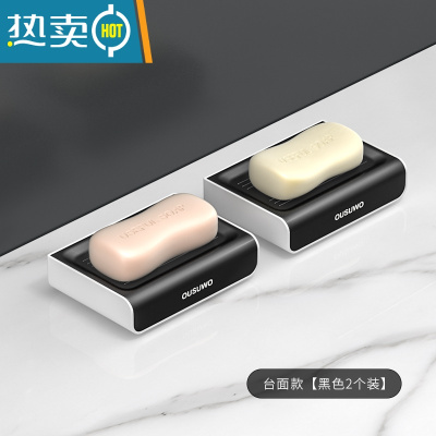 敬平肥皂盒壁挂式创意沥水架家用台面卫生间双层浴室免打孔香皂架 台面款[黑色2个装]