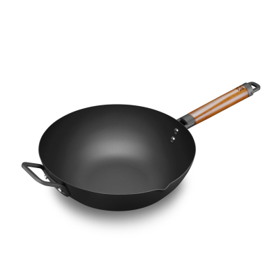 三禾窒氮轻铁锅32T1氮化炒锅炒菜锅无涂层高纯熟铁多用平底不易生锈锅具玻璃盖