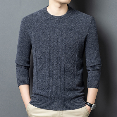 9针加厚450克提花男士羊毛衫冬季新款全毛圆领打底保暖毛衣男