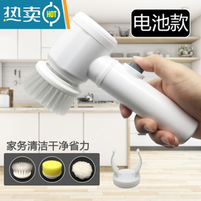 敬平手持无线电动清洁刷厨房浴室强力电动清洗刷子瓷砖地砖刷洗碗器 一套电池款(含3个刷头)