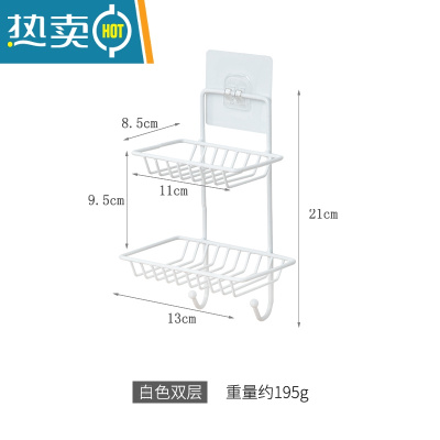 敬平卫生间墙上肥皂架免打孔浴室壁挂香皂盒洗澡间墙壁铁艺收纳挂架 白色双层