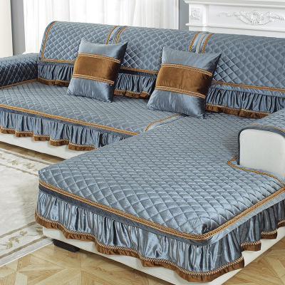 家柏饰(CORATED)沙发垫冬季毛绒防滑沙发套全包套罩简约现代坐垫子 锦素年华-灰色 70*180cm+花边