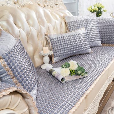 夏季陶瓷凉垫 客厅沙发凉席垫夏天款防滑欧式全包萬能套罩坐垫子 布艺+晶彩灰色 60*150