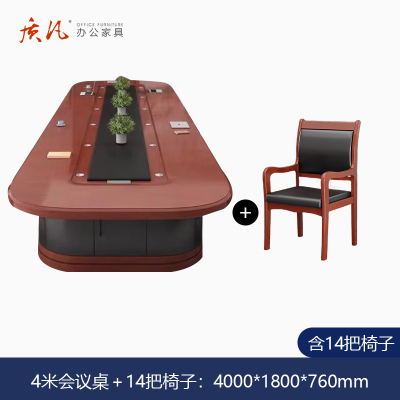 质凡 油漆会议桌4米含14把椅子 /ZF-YQZ096/4000*1800*760mm