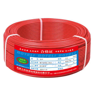 伯特利电线BVR2.5平方多股铜芯软电线100米/盘