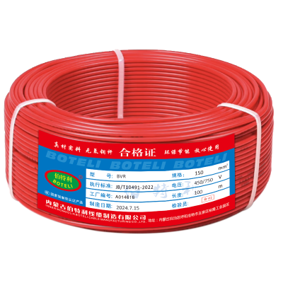 伯特利电线BVR150平方多股铜芯软电线100米/盘