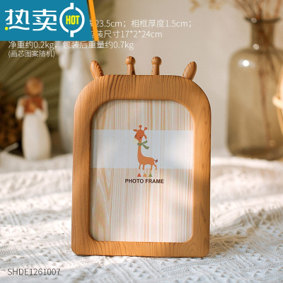 敬平北欧ins风创意7寸相框摆台照片挂墙儿童卡通桌面小摆件塑料相片框 长颈鹿相框-棕色7寸 7寸