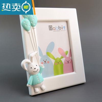 敬平7寸创意影楼相框摆台小熊小兔儿童卡通可爱宝宝学生相架定制七寸 可爱兔子蓝竖版 7寸相框+洗照片