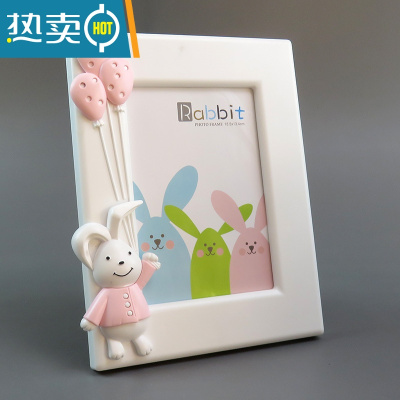 敬平7寸创意影楼相框摆台小熊小兔儿童卡通可爱宝宝学生相架定制七寸 可爱兔子粉竖版 7寸相框+洗照片