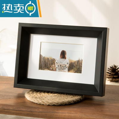 敬平北欧实木质相框ins简约风桌面摆件摆台6 7 8寸洗照片做成相框挂墙 黑色 方5寸[挂摆两用]内径12.7*12.7