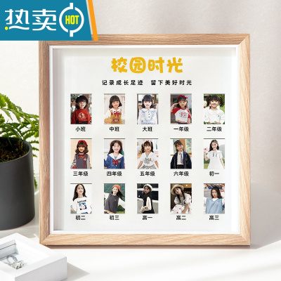 敬平校园时光成长记录相框摆台儿童证件照宝宝年龄小班年级孩子纪念框 [3D实木款]校园时光-白橡木 相框+[联系客服打印照