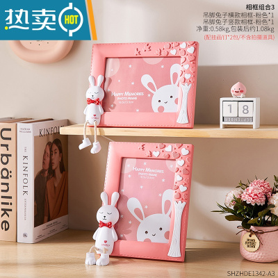 敬平北欧ins风创意7寸相框摆台照片挂墙儿童卡通桌面小摆件塑料相片框 吊脚兔子竖款相框+竖款相框粉色7寸 7寸