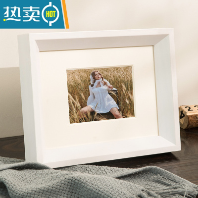 敬平实木相框摆台高级感6寸7寸相框框架摆件洗照片做成相框挂墙加打印 白色 6寸[挂摆两用]内径10.2*15.2