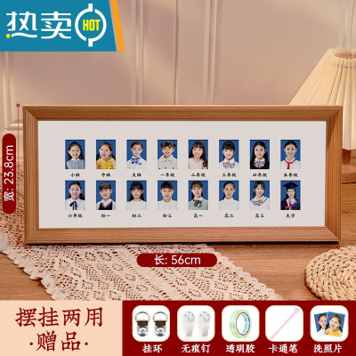 敬平校园时光成长记录相框摆台儿童证件照宝宝周岁留影孩子生活纪念框 校园相框+洗照片 原木色