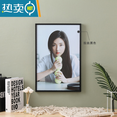 敬平窄边铝合金画框装裱相框挂墙展览广告海报框拼图裱框架易安装定制 黑色 16K(可放19.5*27cm)挂墙