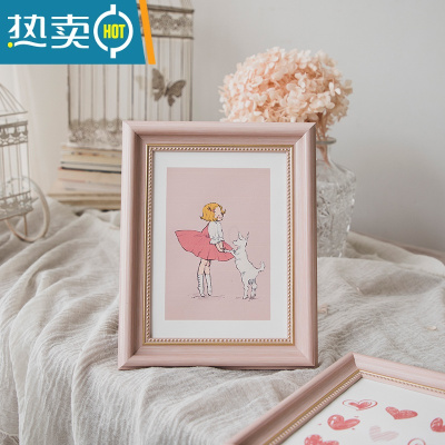 敬平相框摆台美式复古6寸7寸8寸画框挂墙油画棒框照片打印加定制框架 樱花粉 正方形7寸[内径17.8*17.8]摆桌+挂