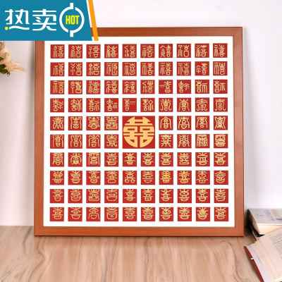 敬平百喜图diy新婚礼物手写喜字手工自己写百寿图临摹百福图简约相框 红木色[百喜图] 33cm*43cm[45宫格][配