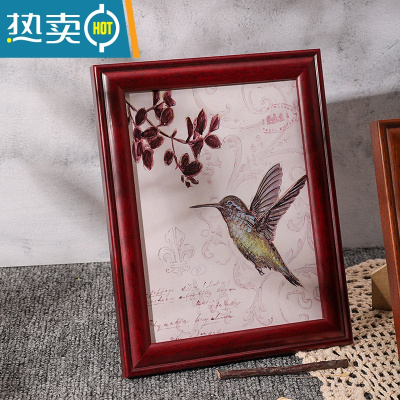 敬平复古相框摆台怀旧现代轻奢5 6 7寸画框七寸桌面A4美式小摆件定制 红木色 8K[内框26.5*38厘米]挂墙
