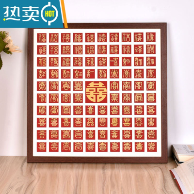 敬平百喜图diy新婚礼物手写喜字手工自己写百寿图临摹百福图简约相框 胡桃色[百喜图] 46cm*46cm[97宫格][配