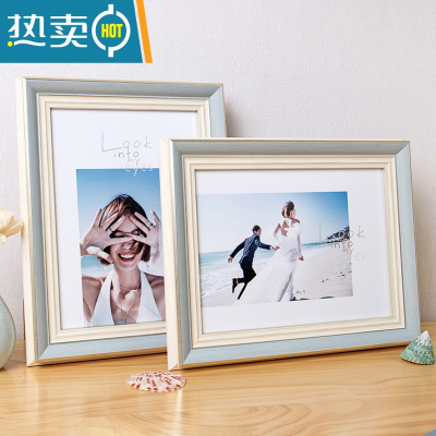 敬平美式相框摆台欧式复古相架挂墙定制画框7 8寸婚纱照全家福洗照片 8057蓝色 小24寸(内径40.6*61)挂墙