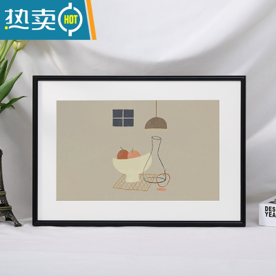 敬平简约细窄边铝合金画框装裱相框挂墙a4开8kA3卡纸海报拼图框架定制 006圆面黑色 [内框40*60cm]送挂墙无痕