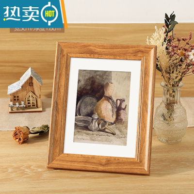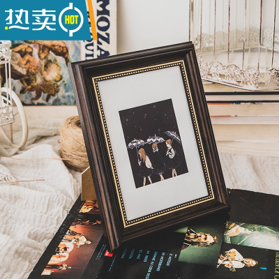 敬平创意北欧美式复古画框外框7 8k 10 12寸挂墙洗照片加相框横竖摆台 复古胡桃色 其他尺寸[定制联系客服]