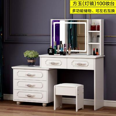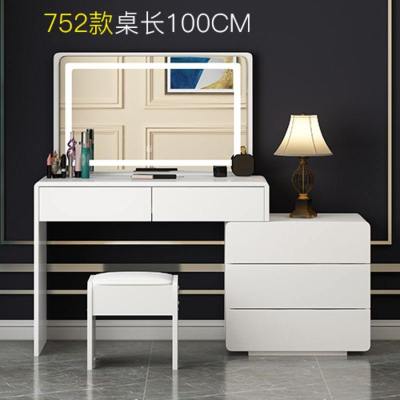 北欧轻奢梳妆台卧室现代简约网红化妆台收纳柜一体可伸缩带灯