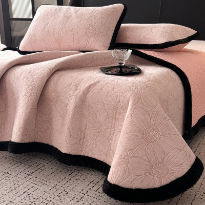 新款牛奶绒床盖单件冬季珊瑚绒夹棉床护垫加绒加厚床单三件套