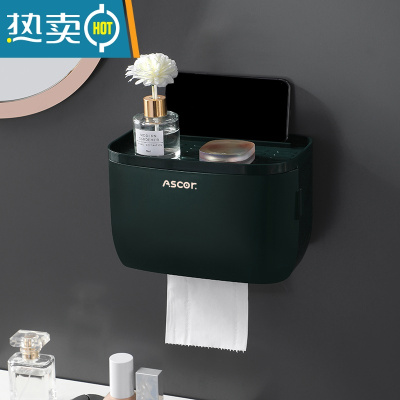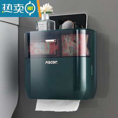 敬平卫生间纸巾盒厕所厕纸卫生纸置物架卷纸抽纸网红防水免打孔挂壁式 祖母绿 单层[纸类通用 双层大容量]