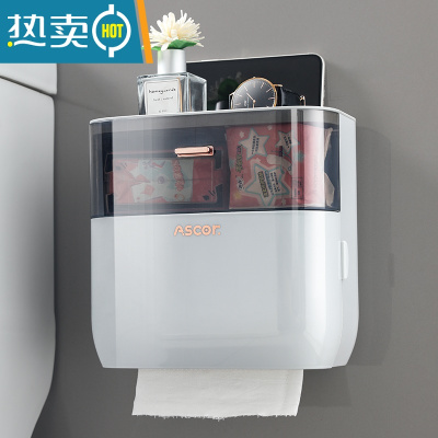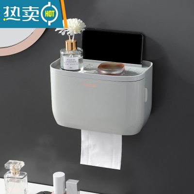 敬平卫生间纸巾盒厕所厕纸卫生纸置物架卷纸抽纸网红防水免打孔挂壁式 迷雾灰 单层[纸类通用 双层大容量]