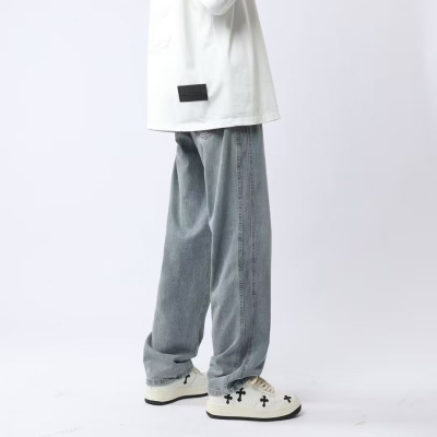 牛仔裤男秋季新款宽松直筒裤休闲裤子男生复古长裤高街阔腿裤