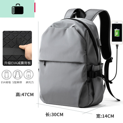 双肩包男士轻便初中大学生书包简约时尚电脑背包休闲潮流旅行男包NEW LAKE 灰色中号