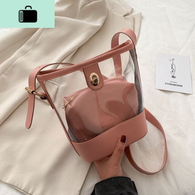 仙女包包2020新款夏季小清新透明果冻包百搭水桶包沙滩斜挎子母包NEW LAKE女士单肩包