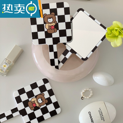 敬平原创款/ins风布丁狗迷你化妆镜女可爱学生宿舍便携随身手持小镜子便携式用镜 苹果小熊熊