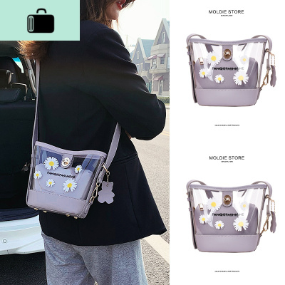 夏天夏季小清新紫色小雏菊透明包果冻包包女2020新款潮斜挎水桶包NEW LAKE女斜挎包