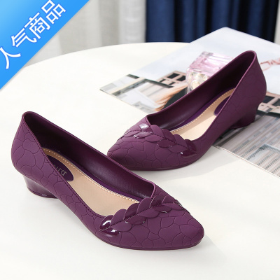SUNTEK包头时尚四季单鞋中跟粗跟坡跟果冻凉鞋女夏百搭舒适防水防滑软底