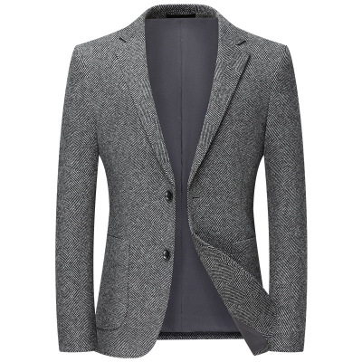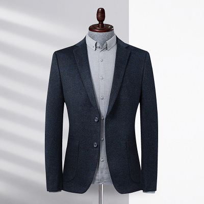 秋冬新款针织弹力西装中青年男士西装男修身毛料休闲西服
