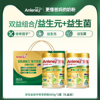 安怡金装益生菌中老年奶粉800g*2罐礼盒装高钙低脂送爸妈送礼佳品